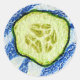 A pencil and pen drawing of a slice of a cucumber on a tablecloth.
