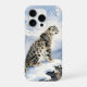 A pretty wildlife phone case with an illustration of a majestic snow leopard perched on a craggy, snow-covered peak, gazing out at a vast, frozen mountain range.