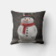 A SNOWMAN IN A BLCK HAT THROW PILLOW