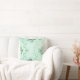 The throw pillow has a soft green pastel coloring with white and dark green designs on it. This throw pillow gives a feeling cheer along with a soft touch
