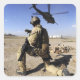 A soldier conducts security for an HH-60 Pavehawk helicopter featured with CSAR.