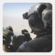 A soldier provides security square sticker