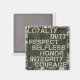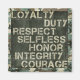 A magnet with a camo background and then the words "Loyalty, Duty, Respect, Selfless, Honour, Integrity, Courage and go Army". The values every soldier lives by. Makes a great gift for any soldier or a soldier's family.