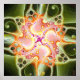 Using the KPT fractal generator filter “FraxPlorer”, I created the base image from which this work of art was derived. I then followed up by putting that base image through a combination of additional filtering, layering, and colour enhancement effects in Photoshop. Abstract Image 895 was the result, which I later renamed A Splotch of Fairy Magic Variation 3. This piece is now available as an art poster print in all the main sizes of the square aspect ratio from extra-small at 11” by 11”, to small at 16” by 16”, to medium at 24” by 24”, to large at 32” by 32”, and even up to the extra-large at 40” by 40” size, complete with the digitally embossed Bill M. Tracer Studio logo signature seal, small as not to distract from the design, while decidedly present, showing authenticity. Now as for the imaginative aspect of this image: The evil sorcerer Val Belmarx devised many dark methods to capture fairies in the wild. He then employed even darker incantations to extract from them their essential magic, which he stored within his magically suspended vortex of holding. When fresh with an infusion of fairy magic the vortex glows brightly, however when Val Belmarx needs to extract more to refresh the vortex, the glow diminishes. Immediately following an especially large infusion the vortex can flair up to an extremely bright state, such as we see here in Variation 3 of this series.