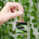 A photograph of a black butterfly on leaves in a garden.
