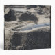 A static display of an ordnance shell and a mine lay half-buried in the sand featured with beach.