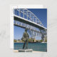 A statue of Thomas Edison by local artist Mino Duffy sits below the Blue Water Bridge along the St Clair River at Port Huron, Michigan � David R. Frazier / DanitaDelimont.com
