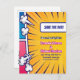 Announce your engagement with a unique and personalized comic book-style save-the-date card. This vibrant and visually striking invitation, customized with your names and wedding date, is the perfect way to introduce your superhero love story to your guests. Designed by freepik.