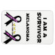 A survivor of Melanoma! On the top of the design are the words "I am a survivor" Under these words is the word "Melanoma" and "Live for Life". On the bottom of the design are 2 black ribbons which is the cancer colour of melanoma. On one ribbon it says "A survivor" and on the other black ribbon are the words "live for life". Between these two ribbons are the words "Live for life" with 3 yellow butterflies above the centre of these words. On the bottom of the front of the design below the right black ribbon are the initials CC in honour of my sister being a survivor of Melanoma Cancer!