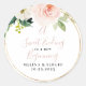 Compliment your classic wedding event with this a sweet ending to a new beginning wedding classic round sticker. The design features pink, white watercolor flowers with green leaves, adorning a gold geometric frame.