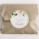 Compliment your classic wedding event with this a sweet ending to a new beginning wedding classic round sticker. The design features pink, white watercolor flowers with green leaves, adorning a gold geometric frame.