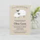 A rustic yet modern lamb baby shower invitation.