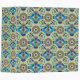 A mesmerizing interplay of blue and orange motifs, complemented by subtle accents of yellow and brown, defines this asymmetrical textile design. The careful arrangement of colours creates a sense of balance and harmony, making it a captivating addition to any room.