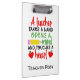 Personalized Teacher Clipboards with pencil design, with quote "A teacher takes a hand, opens a mind and touches a heart" - perfect as teacher thank you gifts / teacher appreciation gift.