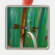 A teal Eyed Dragonfly with cattails Metal Ornament