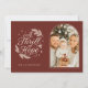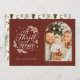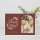 Une carte moderne Red Religious Arch Photo Holiday Card avec les paroles du choeur - A Thrill of Hope. Au verso est un motif de feuilles verts et navals et de pins.