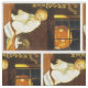 Vintage Halloween greeting card illustration showing a child "spooked" by a jack o'lantern at the window.