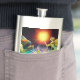 The product is a good size and came exactly as it was pictured. The lid is not attached to the flask, which could be dangerous on drunken nights... The print came out surprisingly well and looks very sharp. Would definitely recommend.