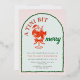 This design features Christmas cocktail theme party "A Tini Bit Merry" with a martini glass and a Santa sitting on it.