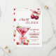 An elegant modern design featuring a watercolor illustration of a cherry martini tied with a pink bow and a cute cherry pattern on the back. Customize the details for a unique and chic Birthday Celebration.