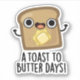 A Toast To Butter Days Funny Food Pun features a cute slice of toast with a slab of butter on him. Perfect pun gift for family and friends who love cute food toast puns.