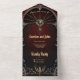 A touch of Gothic magic, Eternal love in the shadow of elegance. a striking, dark, gothic-style frame adorned with ornate metallic flourishes and delicate embellishments. A large spider's web hangs at the top of the frame, elegantly spanning the centerpiece of the design. In the centre of the web, a small spider swings gently back and forth, giving the image a subtle dynamic.