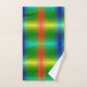 A towel set and washcloth display vibrant rainbow