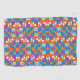 A towel with a vibrant, colorful geometric pattern featuring orange, blue, and purple shapes. The design is symmetrical and visually striking.