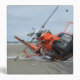 A US Coast Guard MH-65 Dolphin helicopter lays on its side after it crashed at the Arcata Airport during a training mission