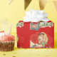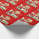 This wrapping paper features a vintage valentine, with a girl getting red hearts out of a chest, and the text, "A valentine to say hi!" The red background can be customized if desired.