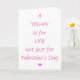Valentine's Day card for Vegans. Message reads 'A Vegan is for Life not just for Valentine's Day' in pink with a small pink heart. Inside the card says 'Happy Valentine's Day'. Easily personalize this card using the template text. See my vegan merchandize in my Vegan collection in my store.