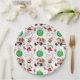 This holiday paper plate depicts Santa Claus hugging a cute Cavalier King Charles Spaniel. This gorgeous Cavalier is surrounded by a variety of dog Christmas ornaments, attractive cake pops, and dog snacks. This is a festive Christmas design for Cavalier King Charles Spaniels and dog lovers alike!