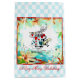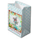 Medium blue and white chequered glossy gift bag with a vintage Alice in Wonderland image, on the front, of the White Rabbit in full regalia in a whimsical Wonderland garden with a red border. See matching large gift bag. See the entire Wonderland Gift Bag collection in the PARTY FAVORS section.