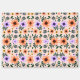 A vibrant floral pattern features orange and purple flowers with green leaves on a white background. The back is plain gray, suggesting the item's reverse side.