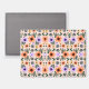 A vibrant floral pattern features orange magnet