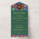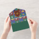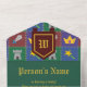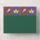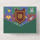 This imaginative all-in-one invitation with removable RSVP card features a background of four squares in rich blue, green, purple, and red framed by gold and silver stitch marks and decorated with fun, stylized icons that would be at home in any fantasy setting, including a star-tipped magic wand, castle tower, jewel-adorned crown, and a blue hilted sword. Layered on top of this quilt pattern are panels of emerald green with faux stitching to provide a base for sample text on the interior that can be customized for your event and blank space on the exterior that can be used for addressing the cards to the recipient and the returnable section with the appropriate return address. Finally a deep red banner with a gold border sits on the flaps with a sample initial to add a final custom touch. Be sure to check out the full A Wee One's Fantasy Quilt collection for more great gifts and products for a baby shower or the little one in your life.