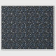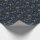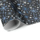 A whimsical flurry of blue snowflakes on black wrapping paper