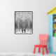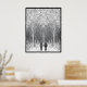 The artwork beautifully blends realism with surrealism, as the ordinary act of hiking transforms into an extraordinary journey through a world where nature takes on a dreamlike quality. The contrast between the detailed, patterned forest and the simple silhouettes of the hikers draws the viewer's eye and invites them to imagine themselves on this whimsical trek.
