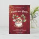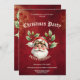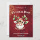 A whimsical steampunk Santa Claus against a deep red background adorned with holly leaves and berries. Santa wears a red hat with white trim and a pair of steampunk-style goggles with golden accents. His white beard and rosy cheeks add to his jolly appearance. The words "MERRY CHRISTMAS" are written in a decorative font at the bottom of the image.