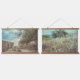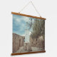Hanging Tapestry in natural earthy tones. Ancient fort walls, a small lighthouse and a Mediterranean coastal landscape with an olive tree for travel lovers and adventures seekers. Coastal, nautical, Provencal style.
