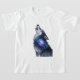 This t-shirt design features a majestic wolf howling at a vibrant, starry galaxy. The unique twist is that the constellations themselves appear to be forming within the wolf's silhouette, creating a beautiful and powerful visual. It's a design that speaks to the wild, the cosmos, and the connection between them.