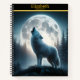 A wolf howls to the full moon in a serene night notebook