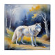 A wolf in a forest watercolor painting tile