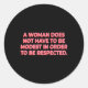A Woman Does Not Have To Be Modest To Be Respected Classic Round Sticker