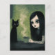 A Woman Enjoying Coffee and Her Black Cat Postcard