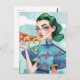 A Woman with a Slice of Pizza UFO shirt Postcard