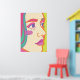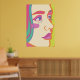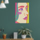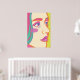 A fictional portrait of a woman with bright makeup, made in bright colours in a modern style.