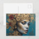 A Woman with Gold and Flowers Postcard