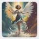 a woman with wings rising up in the air square sticker