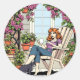A Women with Coffee, Cat and Plants Classic Round Sticker